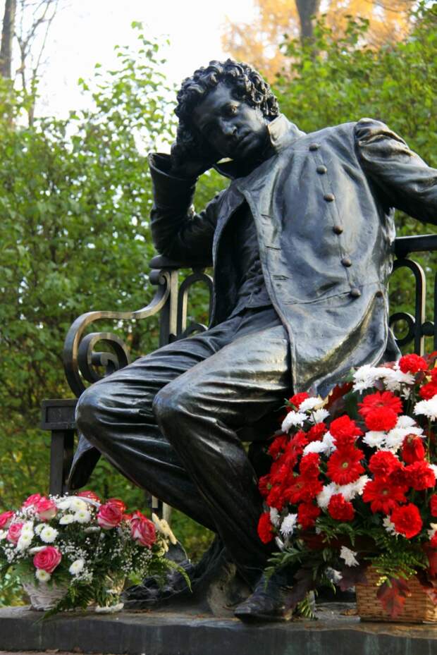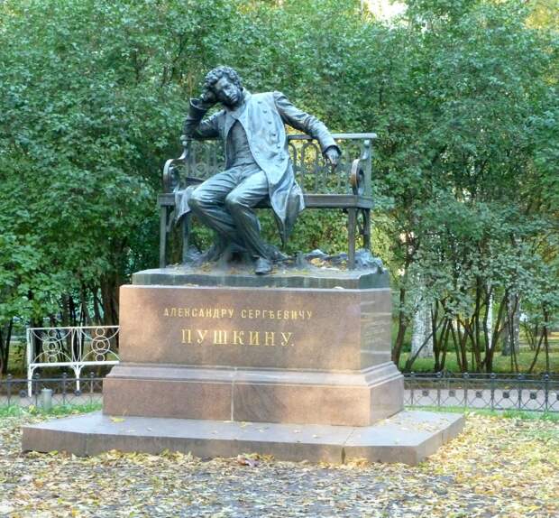 Если бы памятник делали в наши дни, то обязательно сделали без постамента, на уровне глаз, как теперь модно. И все бы лезли на скамейку и в обнимку фотографировались с гением...