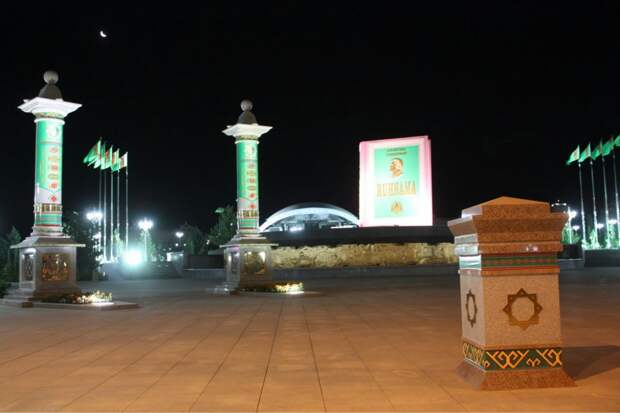 Там описана история туркмен, биография Великого Президента, а также основные заповеди и моральные принципы. Сейчас вся эта площадь на реконструкции и за забором, а раньше в определенный час книга открывалась, и страницы великой истории Туркменистана оживали с помощью современных мултьтимедийных технологий.