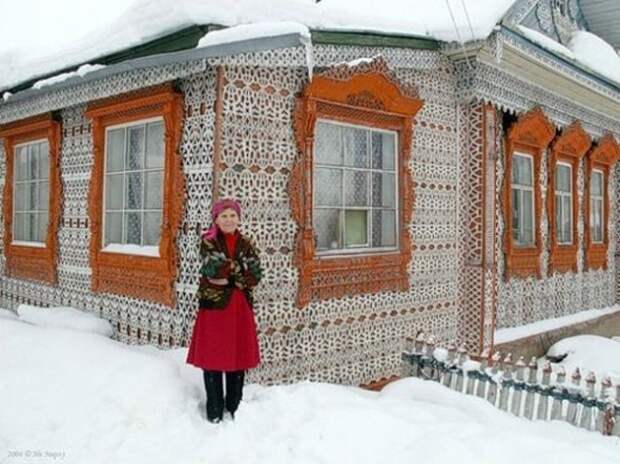 Похоже, эта женщина потратила много сил, украшая этот дом. Все до единого элемента этого орнамента выполнены из дерева вручную.
